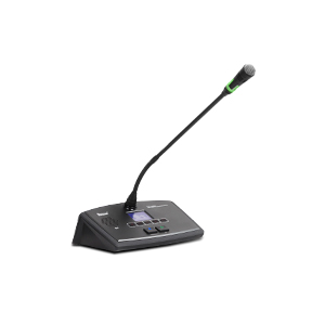 会议单元 •自带2.1米8P公头电缆,单元之间通过分路器手拉手连接; •可拨插式鹅颈话筒带绿色发言指示光环; •主席单元数量不受限制,并可置于任意位置; •话筒单元由系统主机提供DC24V电源,属于安全范围; •主席单元不受会议模式限制;