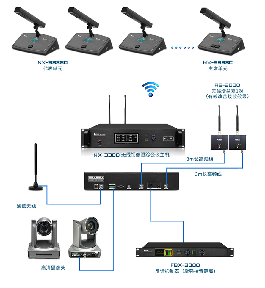 诺讯NX-3388无线视像跟踪会议系统,现场1+1+20席话筒,效果一致好评!会议系统成功案例不断,好产品靠效果与口碑说话,不忘初心,砥砺前行!