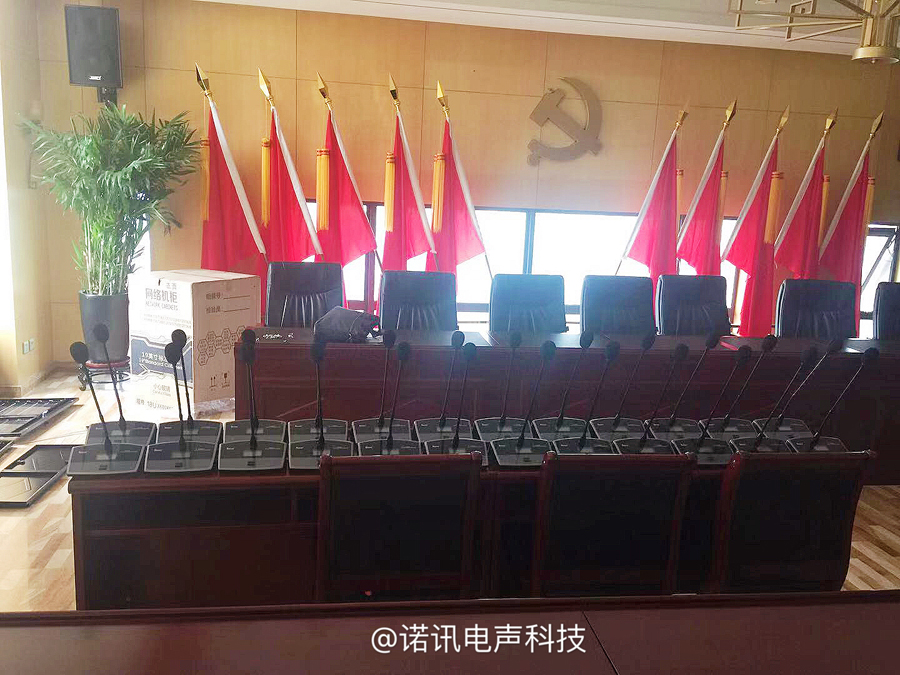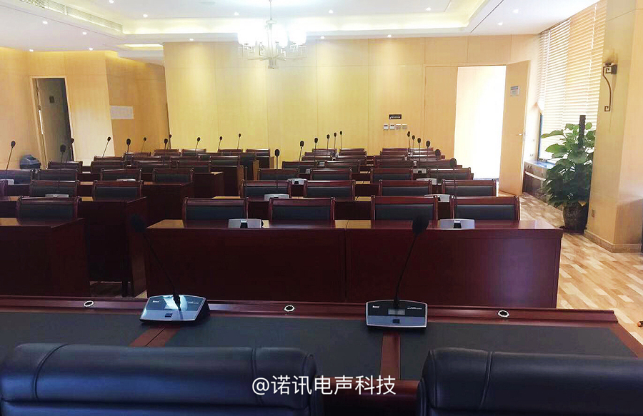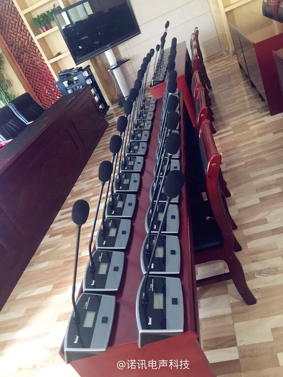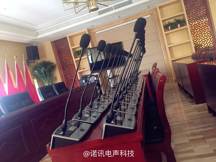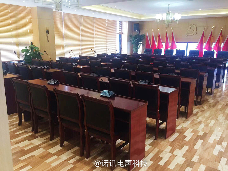 西安华弘城市运营集团有限公司的会议室采用诺讯NX-2288S,NX-9886C/D高端无线会议手拉手话筒1+1+32单元,