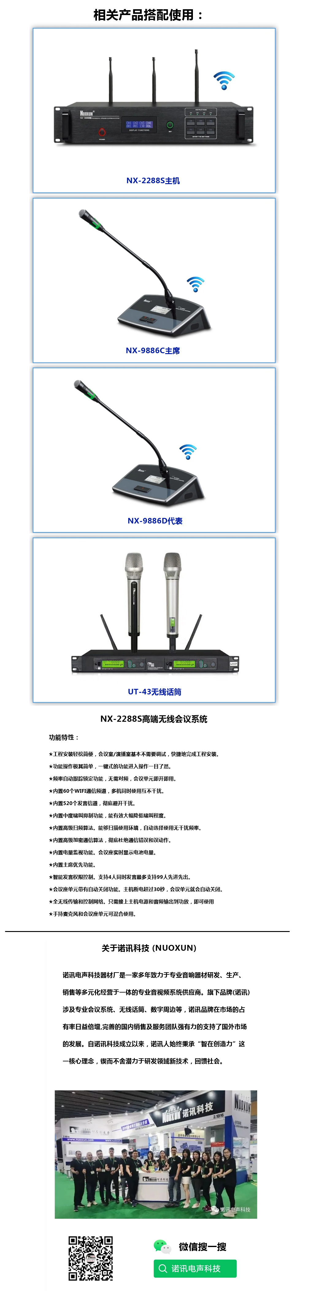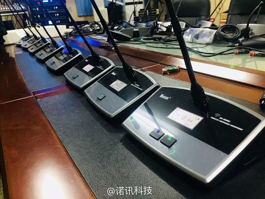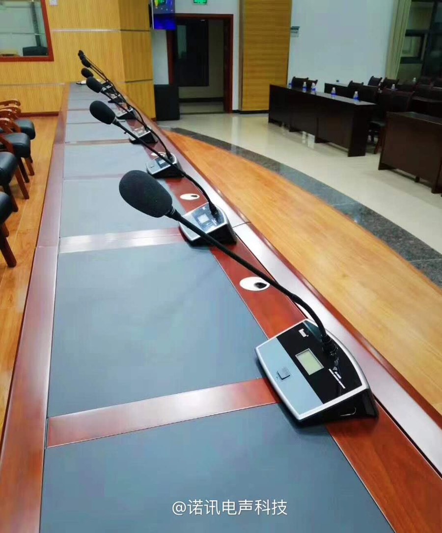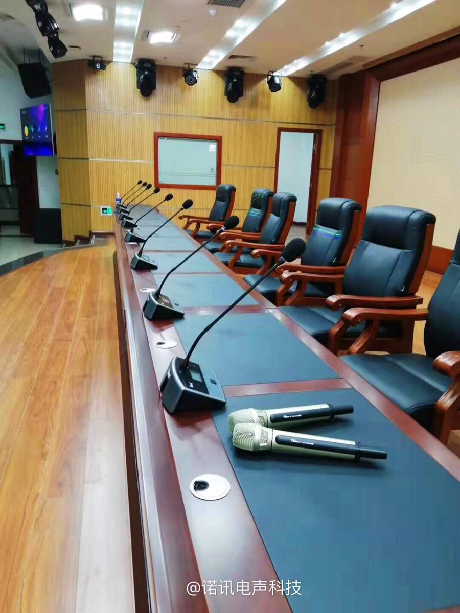 重庆长江水务集团有限公司会议室采用诺讯NX-2288S无线手拉手系统,不需布线,简单实用!配NX-9886C/D会议话筒,