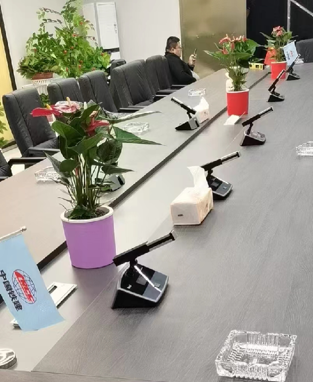 中国铁建工程局集团公司会议室选用诺讯NX-2288S高端无线会议系统2+2+16席,选用NX-9886C/D方杆会议单元,外观高端大气,音质清淅明亮,现场会议效果得到领导的一致好评!客户的满意是我们一直的追求!