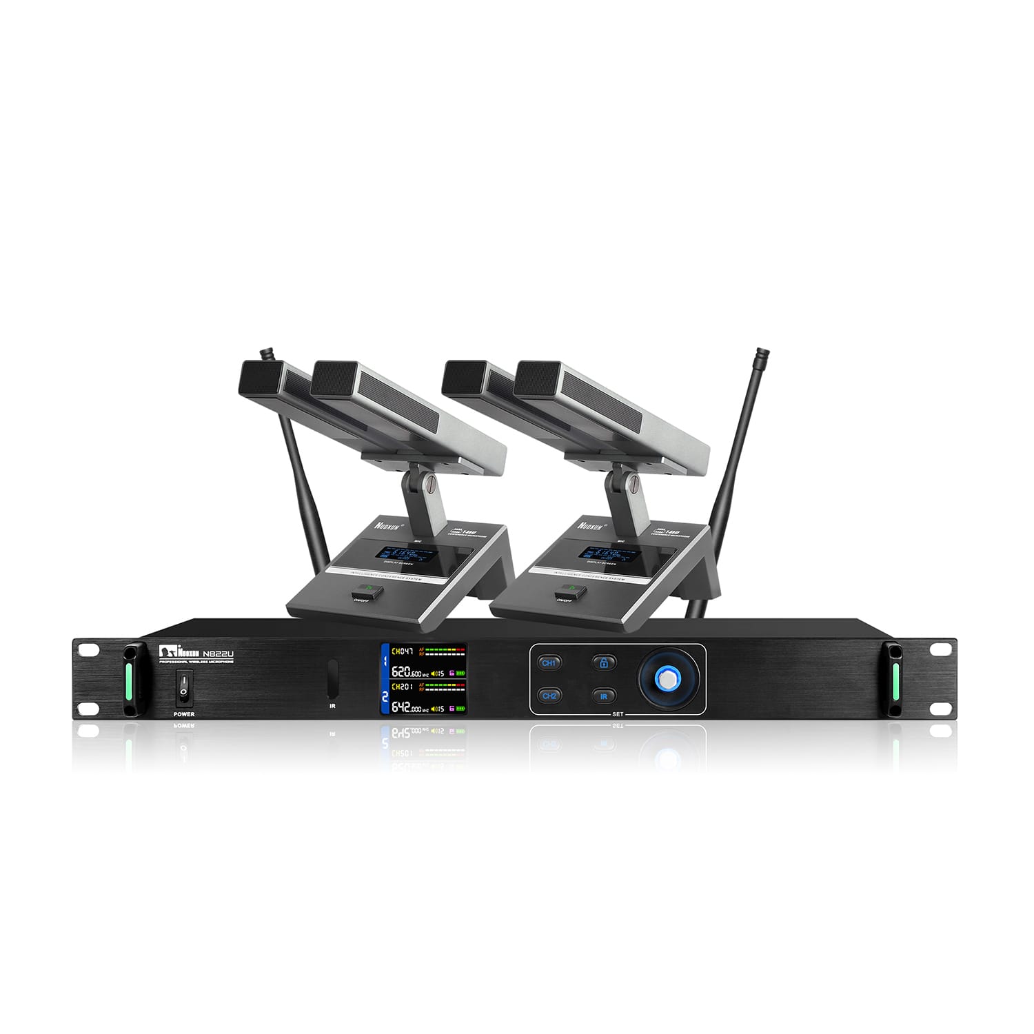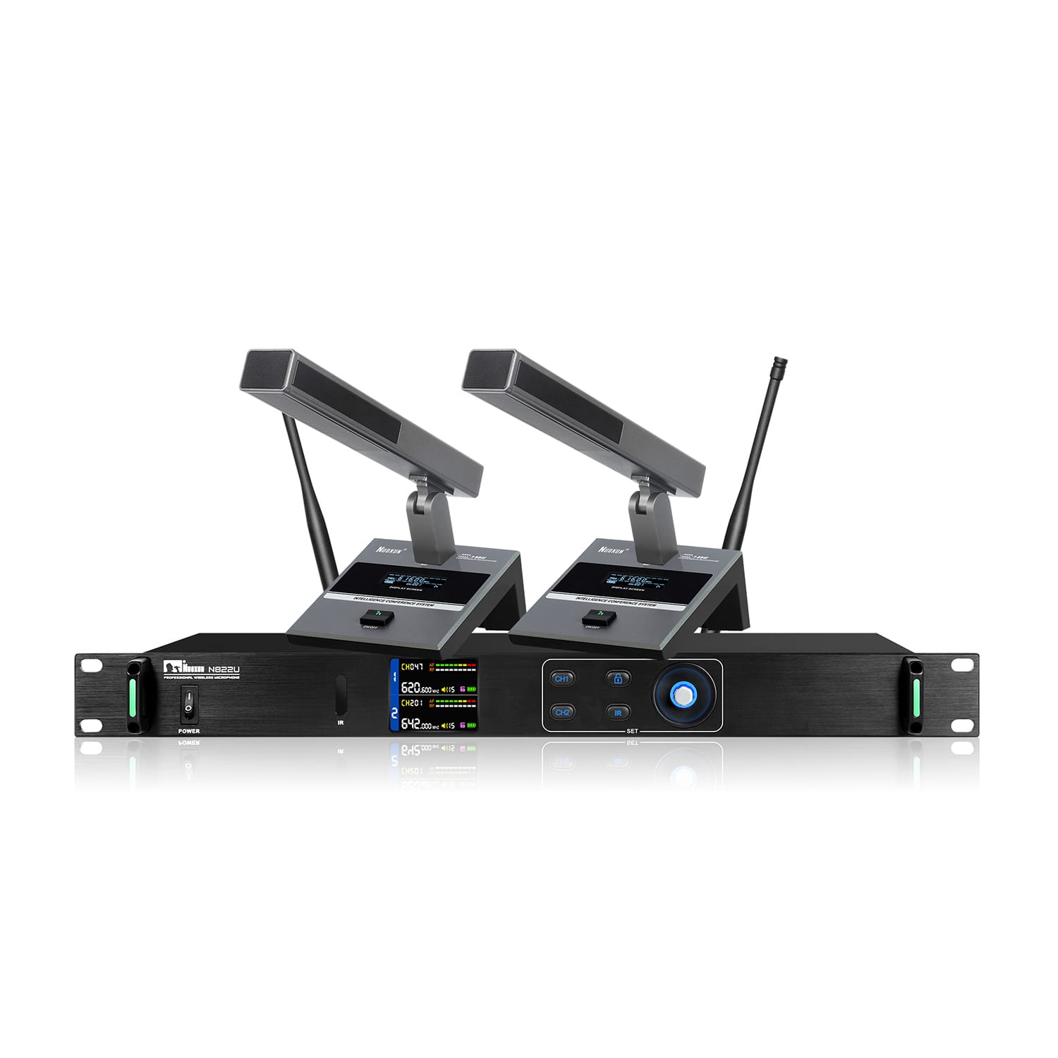 N822U/T-884F-2 U段一拖二无线会议式话筒 (固定式 A-12金属双杆)
