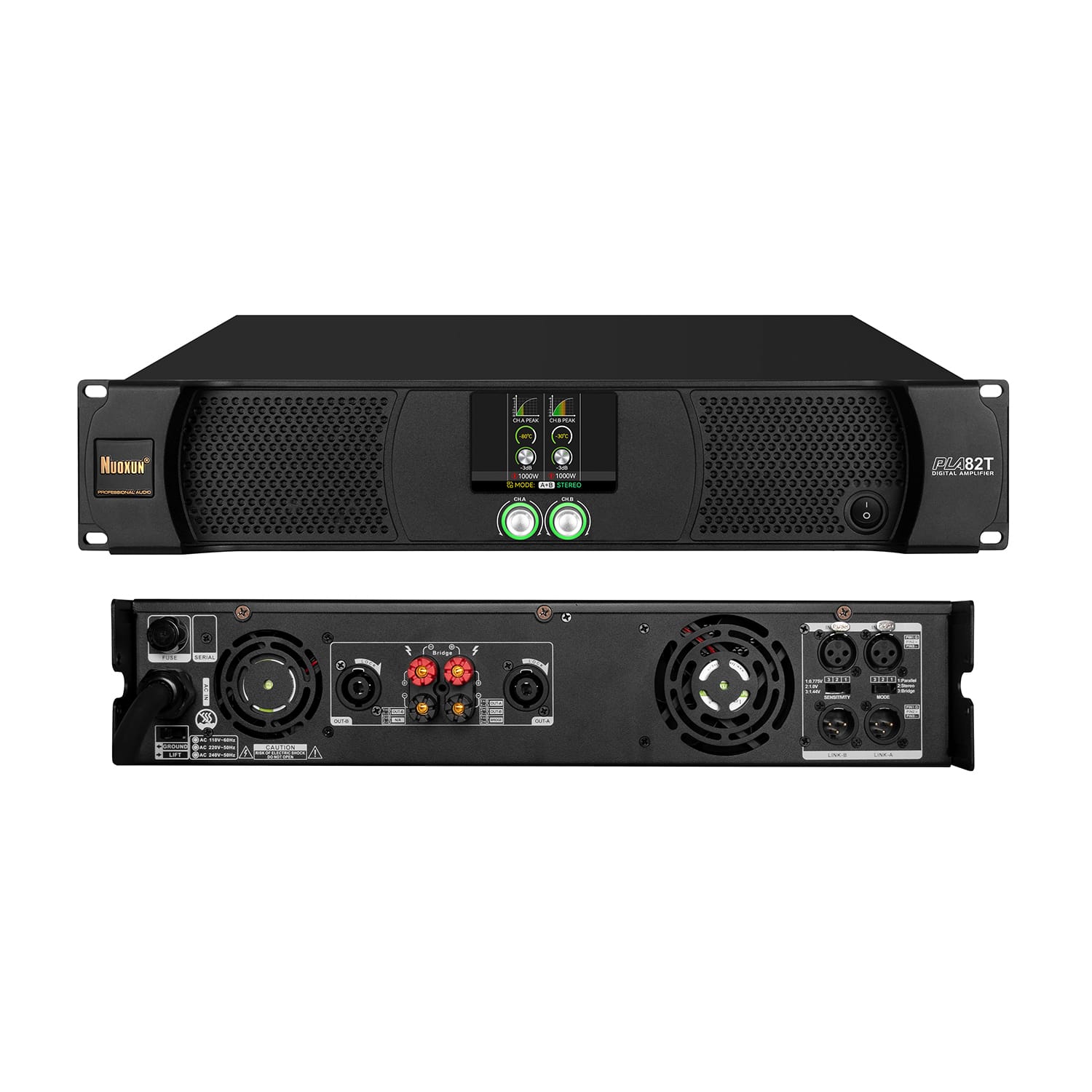PLA系列开关电源数字专业功放采用3.5寸彩屏功能显示款面板;内部功放电路结构是全球自适应宽电压、多级抗干扰滤波、多级主动有源PFC的高效稳