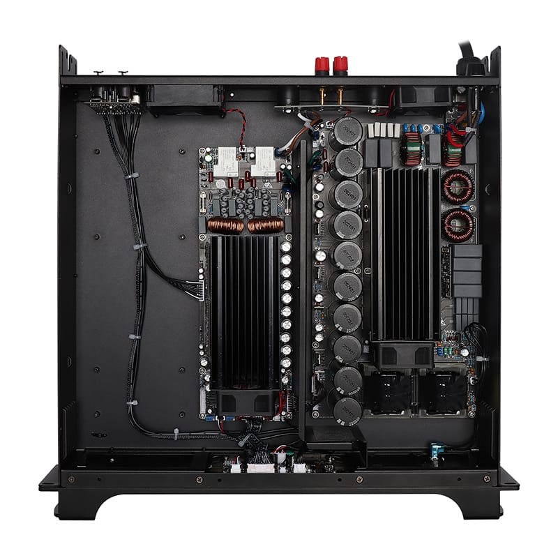 压开关电源提供源源不断的电力,配合成熟稳定的高效D类半桥放大、高保真还原输出,能够轻松驱动低至2Ω阻抗的音箱负载,完善的伺服和保护功能