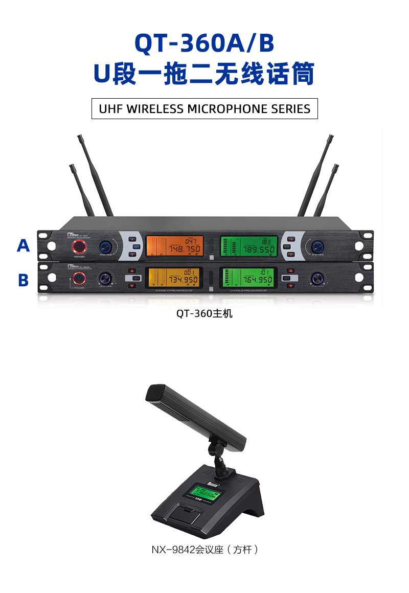 1、提供200个可调信道,采用全新的音频电路构架,数字静音、电位器音量调节、内置移频处理功能、主动防止啸叫;