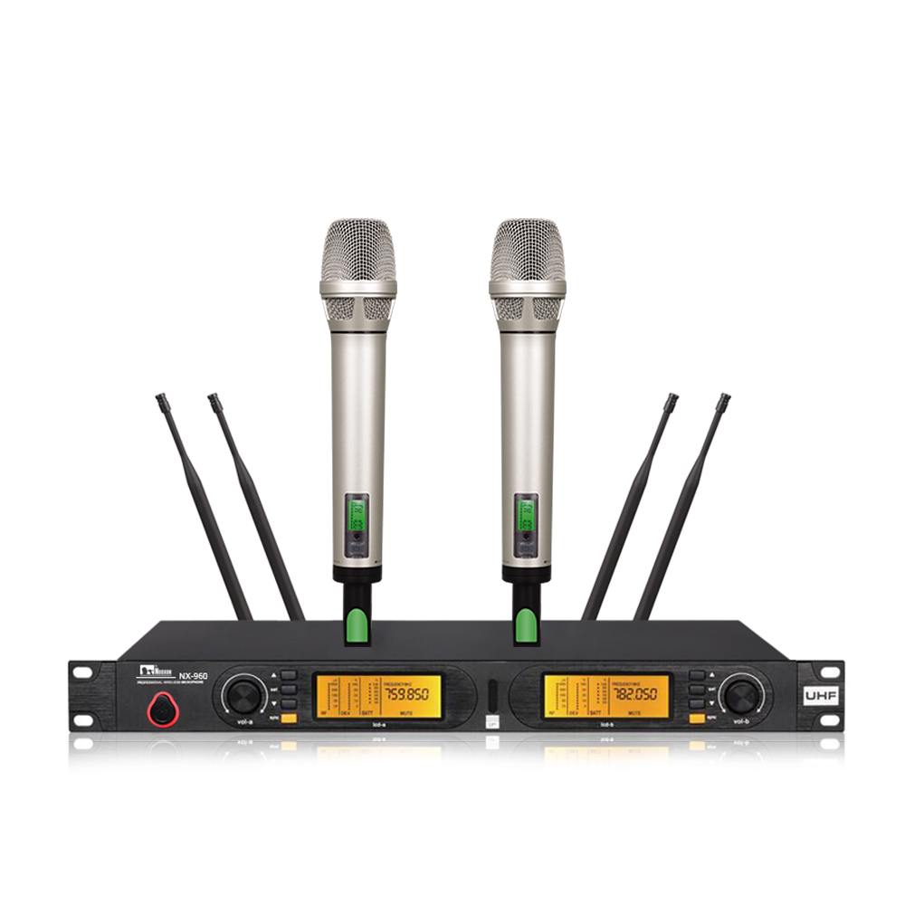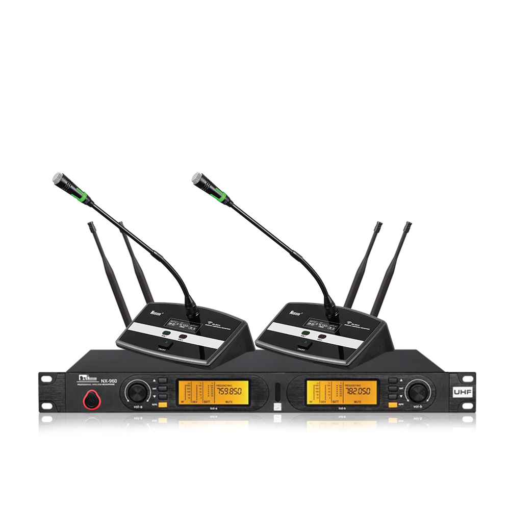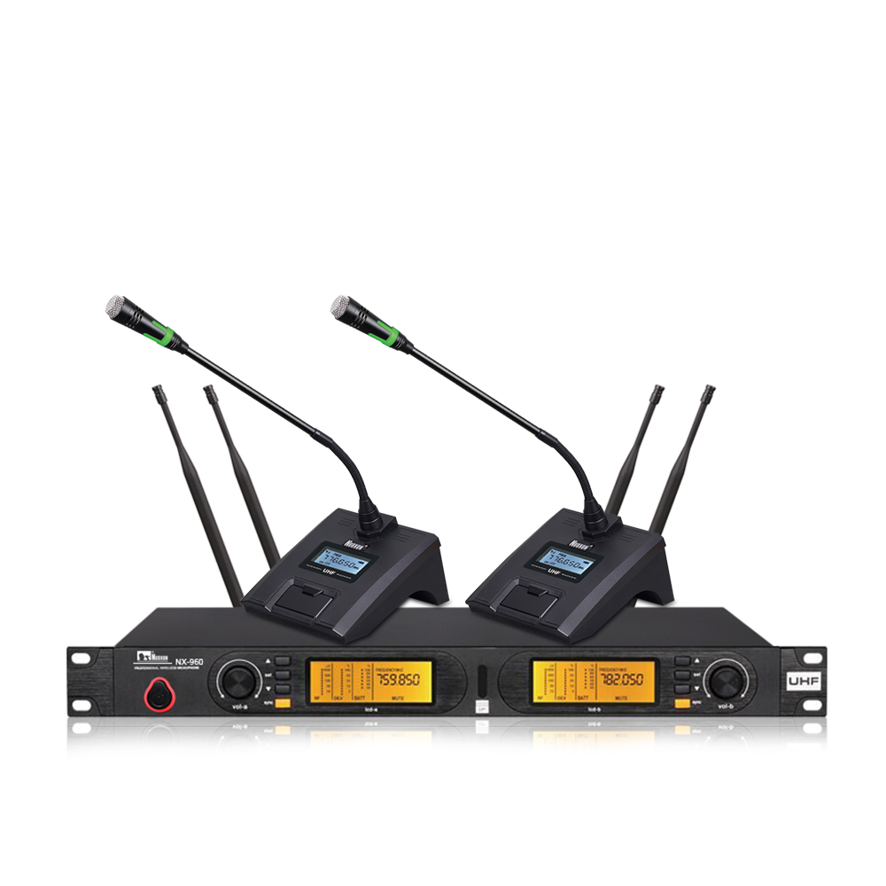 1.可调UHF频率一拖二无线系统;≥200 个高频通道任意选择;