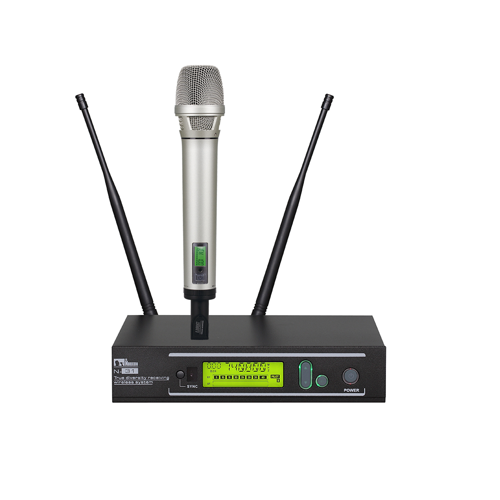 一拖一无线麦克风,采用真分集线路设计,单话筒发射,双天线双线路接收,主机采用时尚小机型设计,细小玲珑,UHF可调频率,液晶显示,红外对频。高保真动圈咪芯,音质亮丽,信号稳定。是一款专业舞台演出,会议演讲,婚庆主持无线一拖一麦克风。