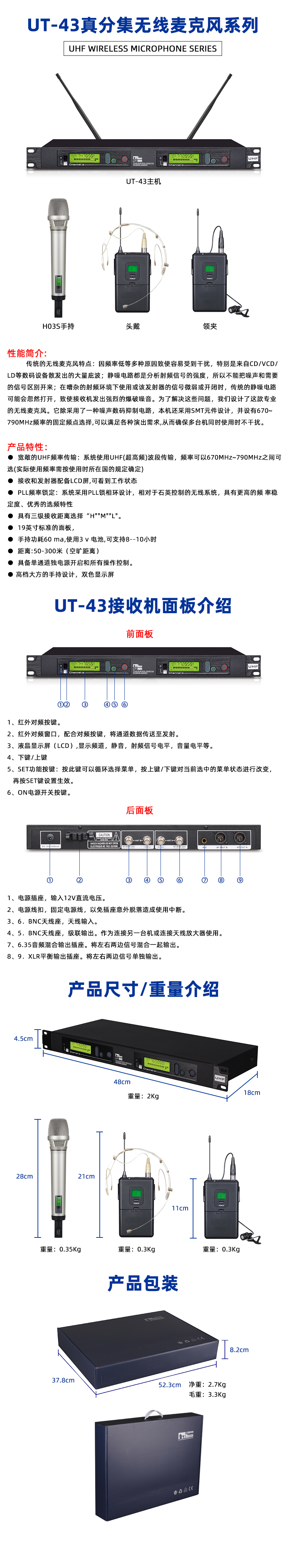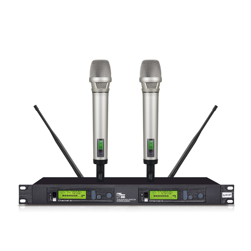 专为现场专业演出而设计,采用真分集设计,内置天线放大器,可实现多机连接使用,多机连接只使用两条天线.