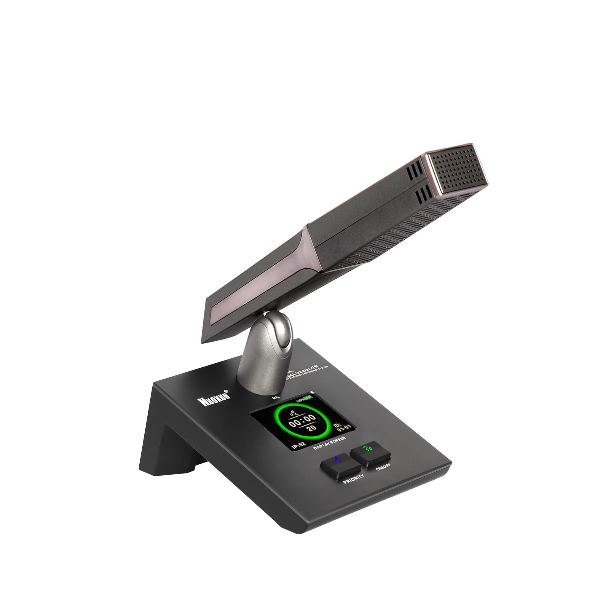 会议单元 功能特点:1.会议单元带视像跟踪功能;2.台面可移动式会议座,纯金属铝合金面板,坚固耐用;3.底座采用工程塑料材质表面喷绒处理,外型设计新颖,内置天线,美观得体。4.采用2.5寸TFT彩屏,显示时钟及电池电量,信息显示更直观和人性化。5.固定式金属双咪杆,···