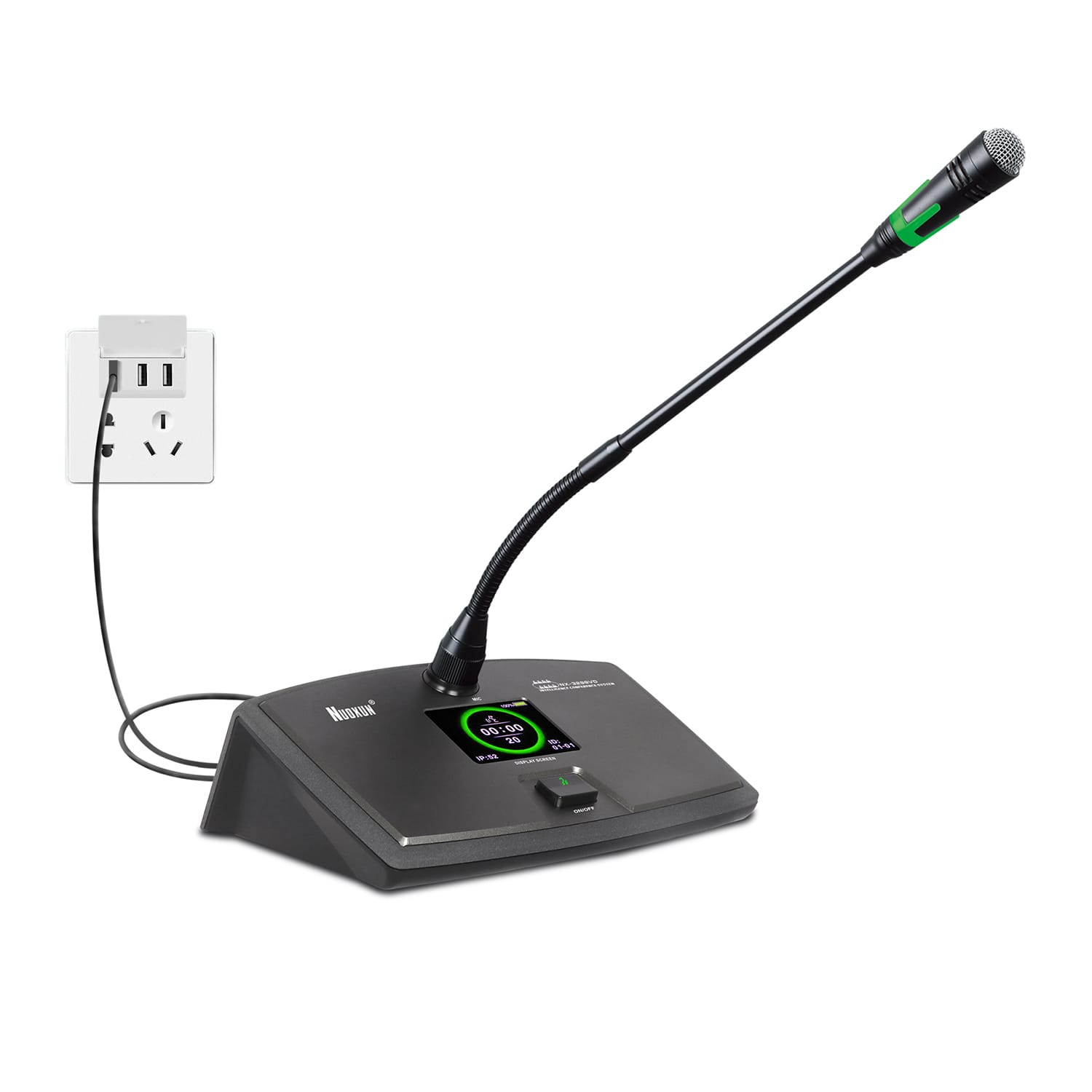 5.可拨插式鹅颈咪杆,带绿色发言指示光环;