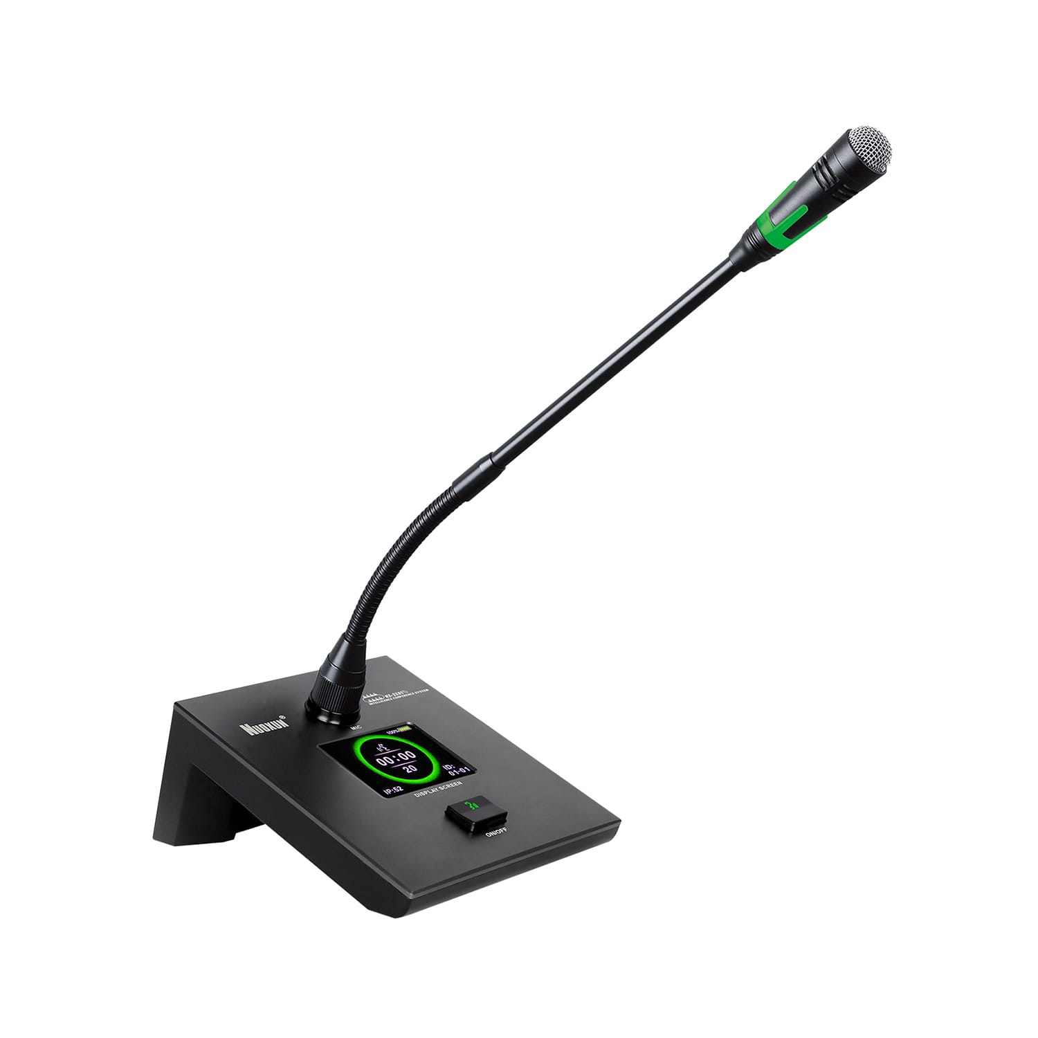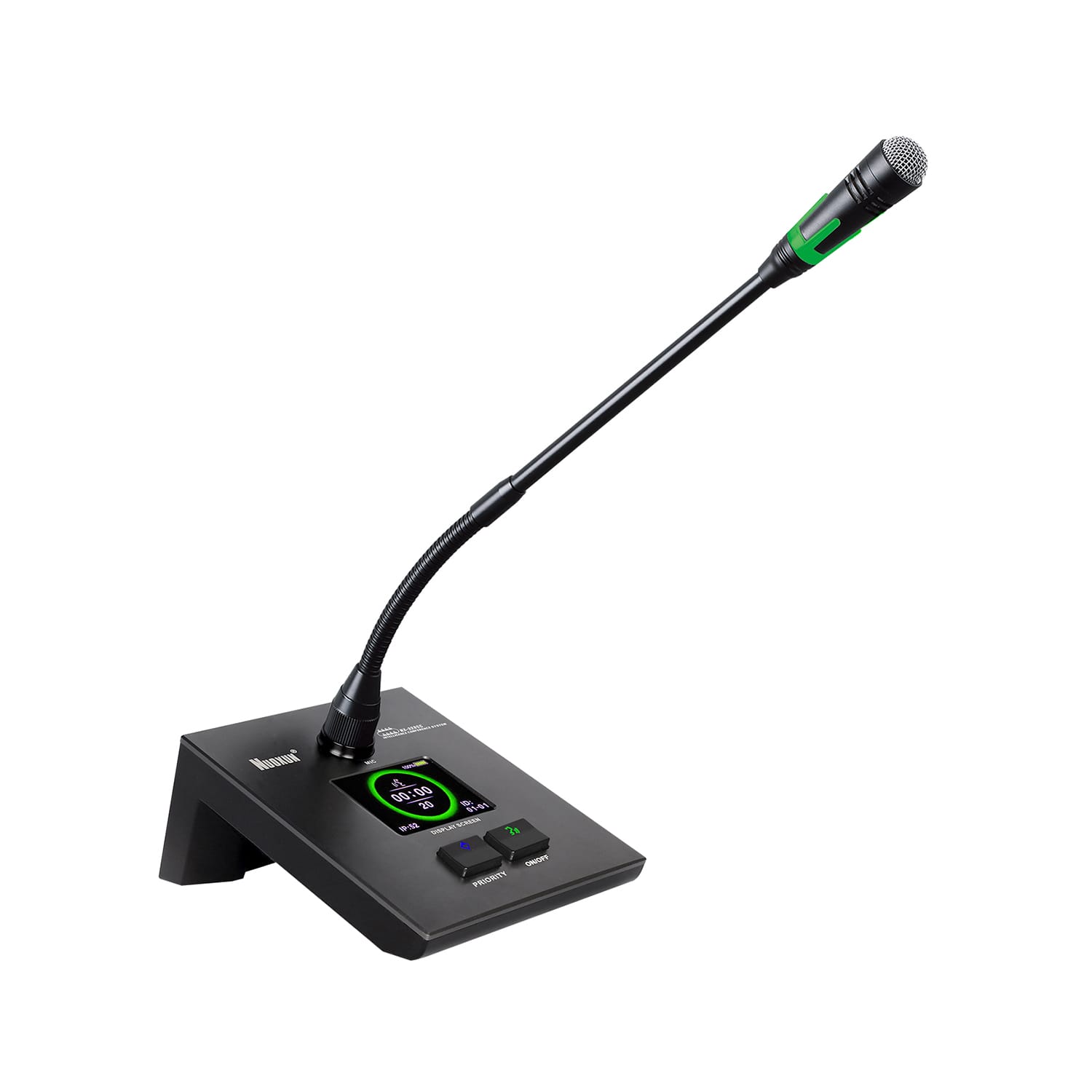 4.可拨插式鹅颈咪杆,带绿色发言指示光环;