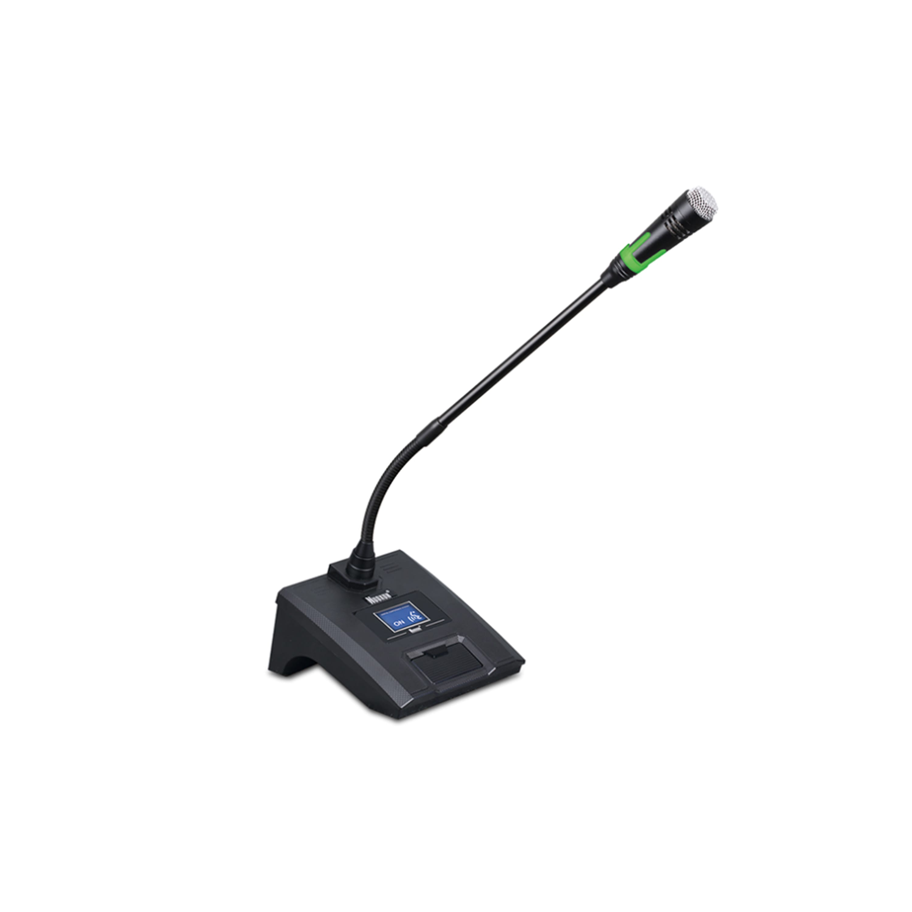 NX-7640C/D是一款数字讨论型会议话筒单元,采用激光晒纹会议底座设计,黑色哑光表面处理,分拆式设计,造形简洁、美观大方,手感好,经久耐用,不易碰伤划花。话筒音头采用最新声学研究成果,使用金属铝合金长管型干涉原理;使得语音更加清晰厚实,频响宽广,灵敏度高不易产生啸叫等持点。NX-7640C主席单元设有中断键,可在任何情况下关闭列席话筒,便于管理会议秩序,适合于高级别会议场所使用。