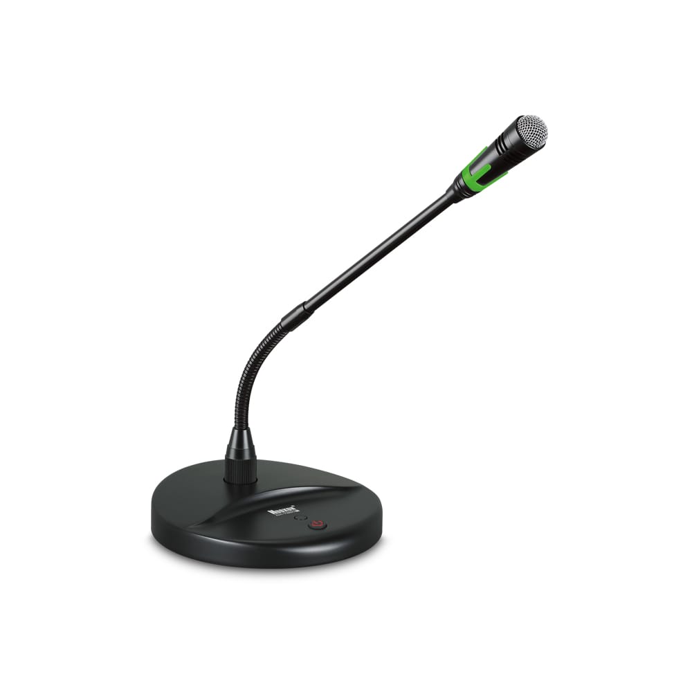 ↘↘桌面式底座,稳固大方,鹅颈和底座设有绿色工作指示灯环