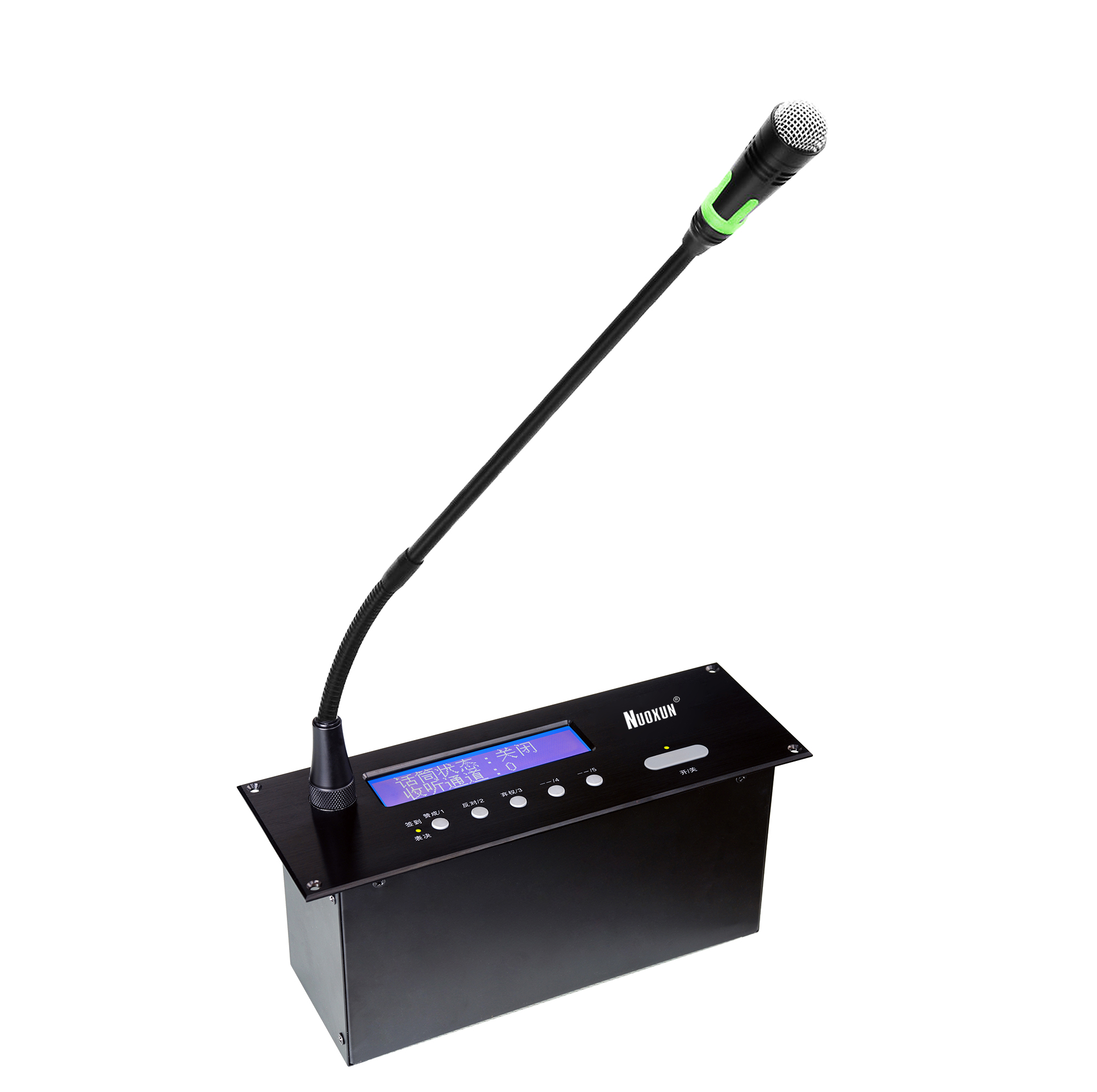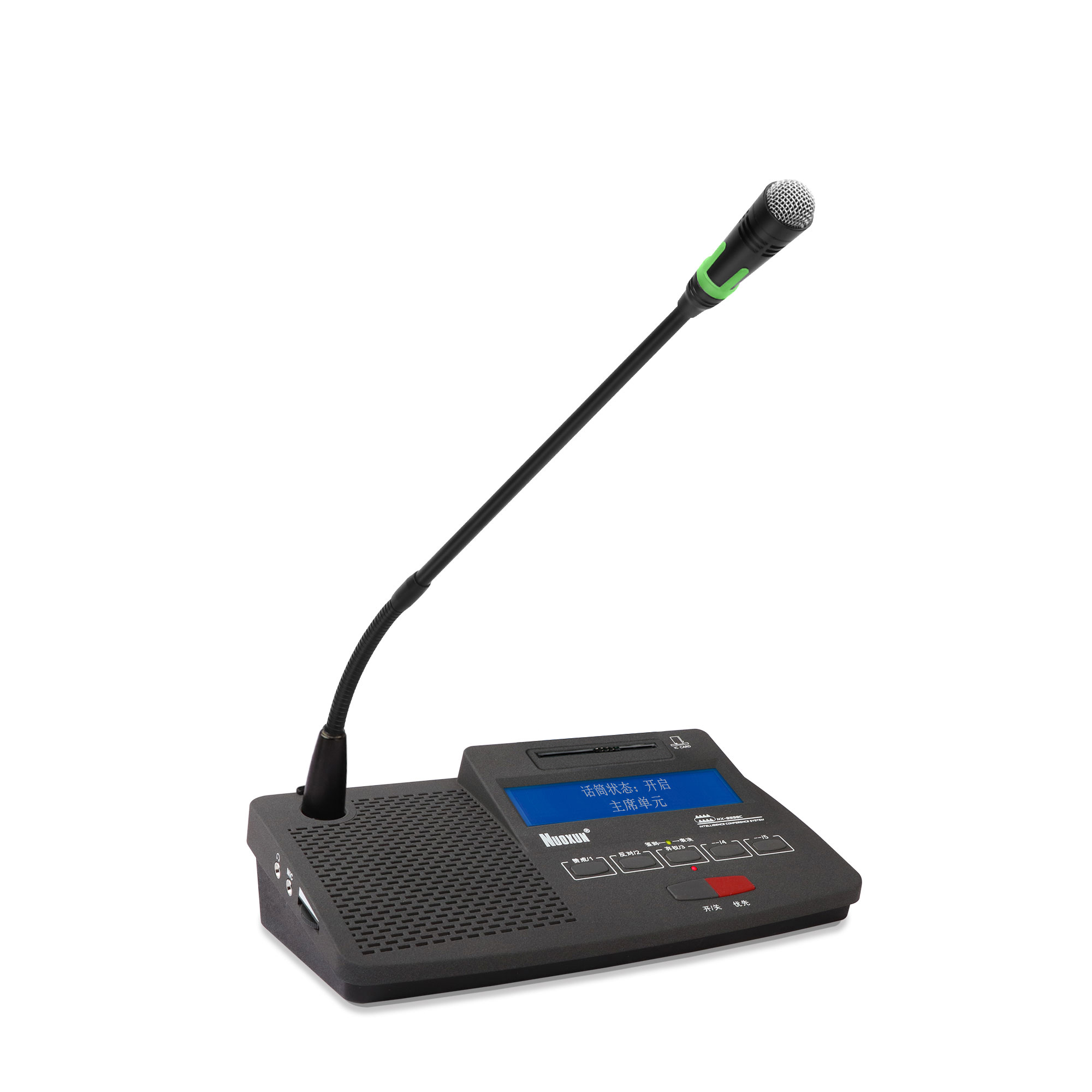 技术参数: 1.频率响应:50Hz-16kHz 2.灵敏度:-44dB±2dB 3.参考讲话距离:20cm~60cm 4.台面可移动式、可拔插咪管 5.自动跟踪摄像会议系统 6.限制发言数量可选 7.净重:0.9kg