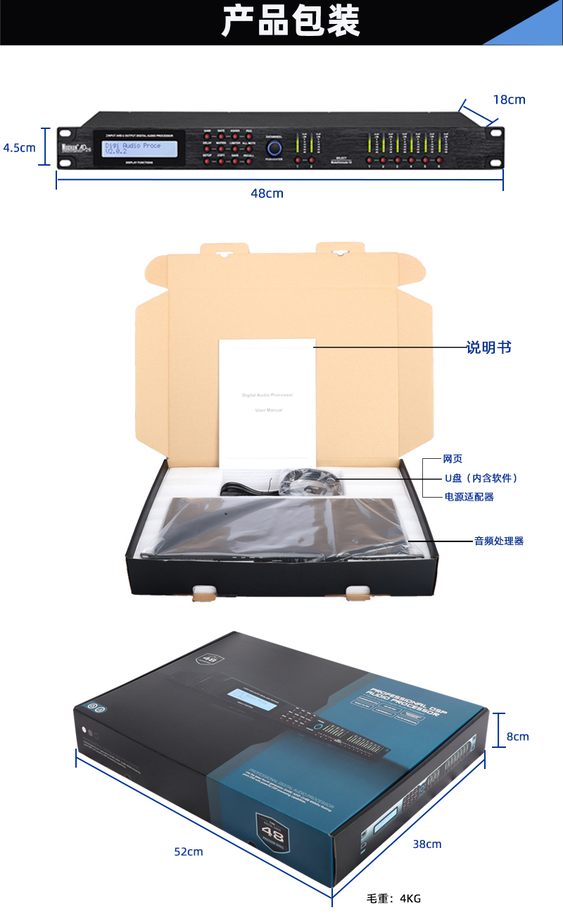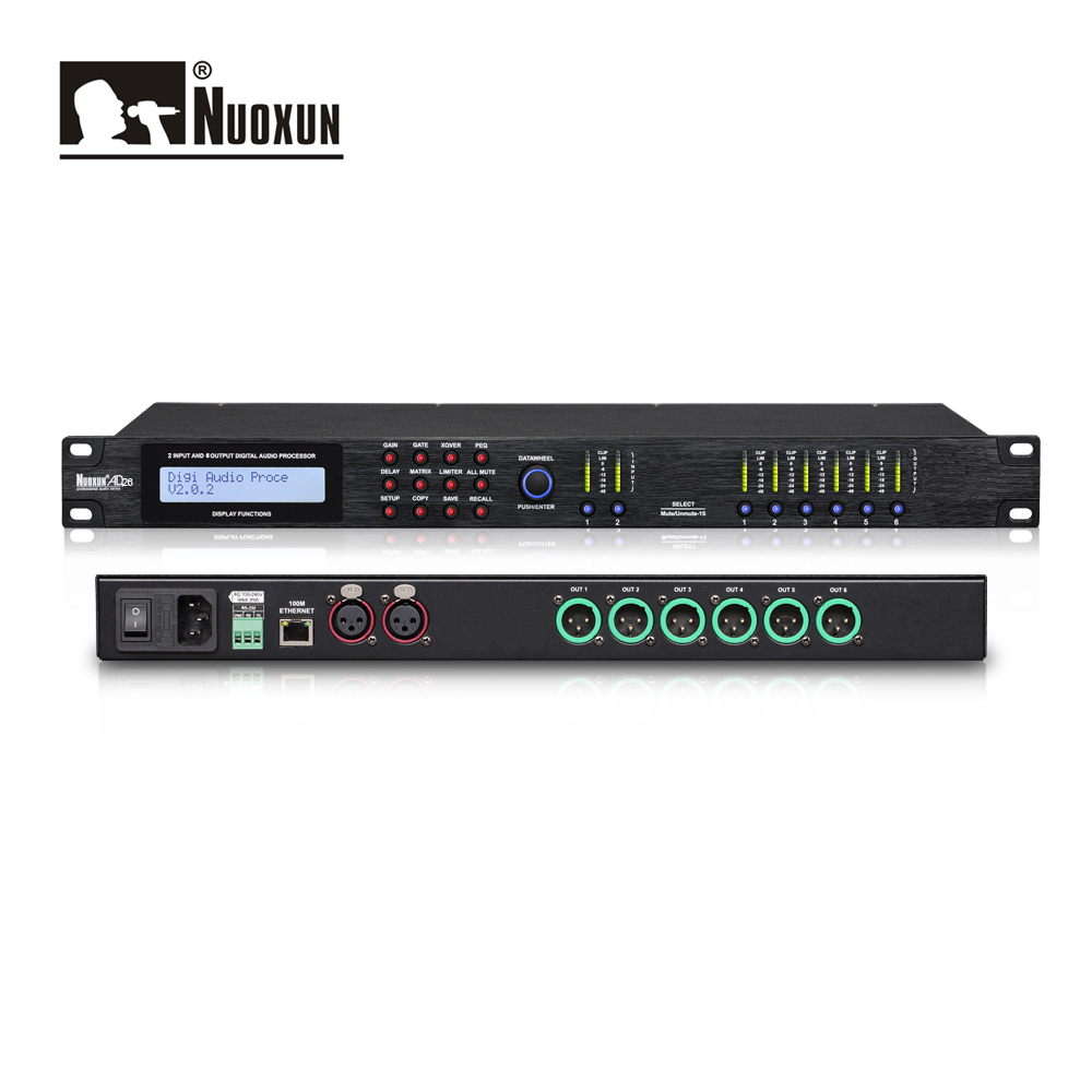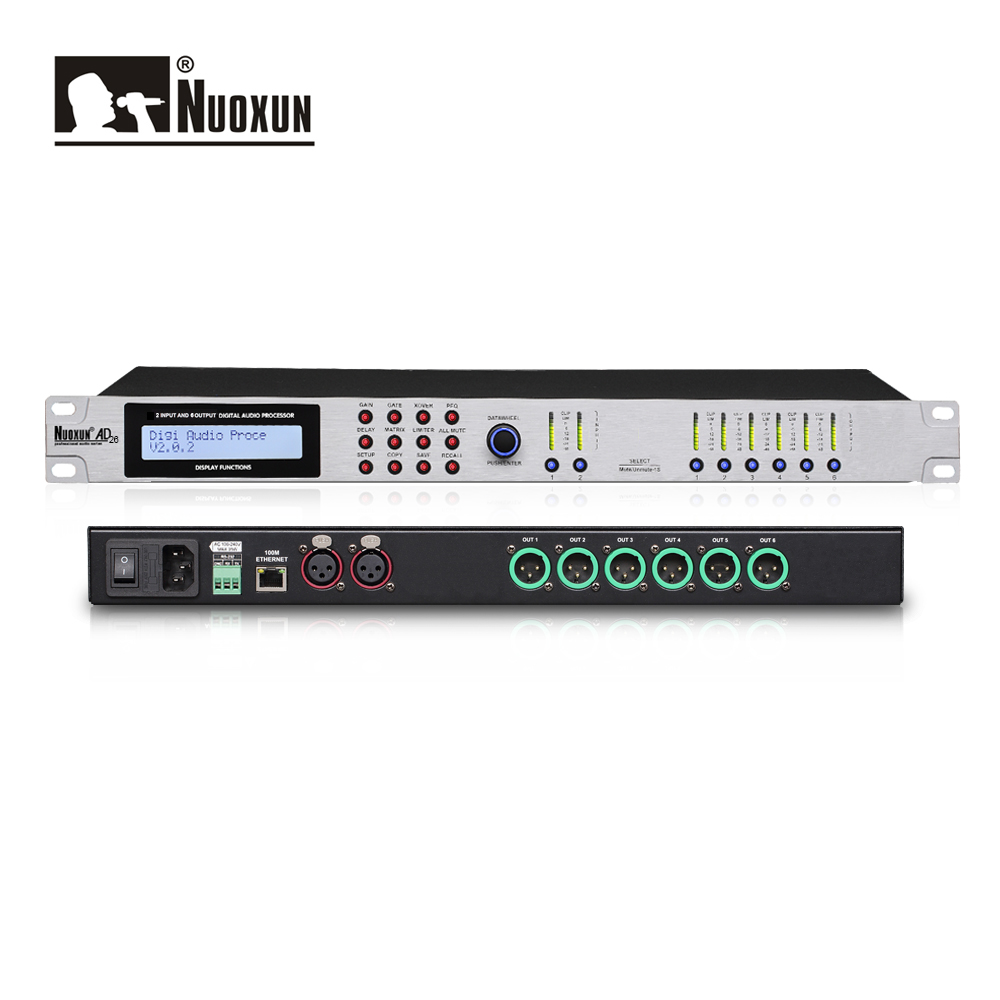 2进6出的音频处理器,使用最新的第四代SHARC ADSP-21488 400Mhz浮点DSP,具有强大的DSP处理能力。每个输入、输出有16段参数滤波器,增益控制、噪声门功能、RMS压限、内置的粉红/白噪声发生器,以及可调的延时。分频器的斜率从6dB/Oct到48dB/Oct范围内可选。延时步进精度0.02ms,电平增益精度0.1dBu,满足现场精细调节。