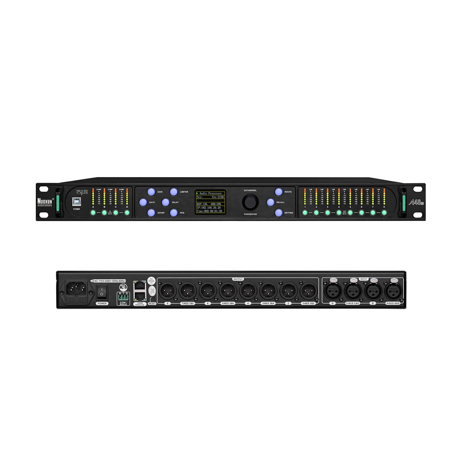 支持4路模拟/2路AES/EBU输入,8路模拟/4路AES/EBU输出。每路输入和输出通道支持16段参数均衡器,配有输出FIR滤波、高低通滤波器、信