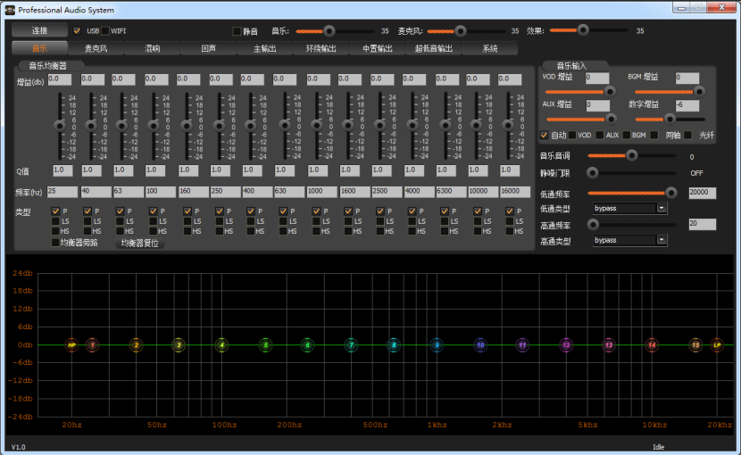 l 音乐15段参量均衡,7段立体声数字变调控制,可调噪声门控制;