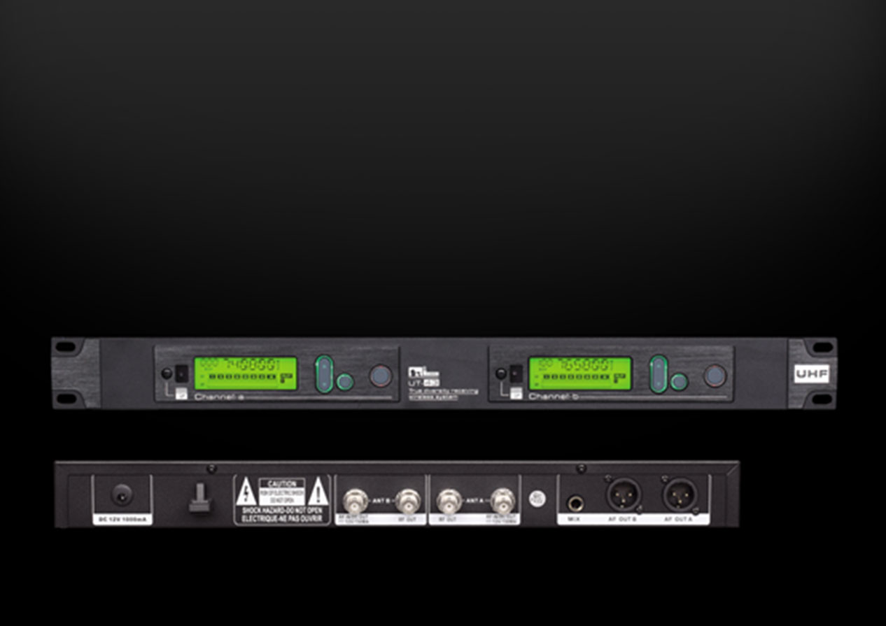 全新的UT-43采用高贵的黑色拉丝面板,饰以金属的机箱外壳,屏幕采用绿色的LCD屏,典雅大方,更具力量感。UT-43搭载全新的结构设计,手持配置尤为豪华,采用了两支H-03手持,诺讯全新设计升级的高保真的手持麦克风,接收范围更远,信号更稳定,打造好声音必备神器。