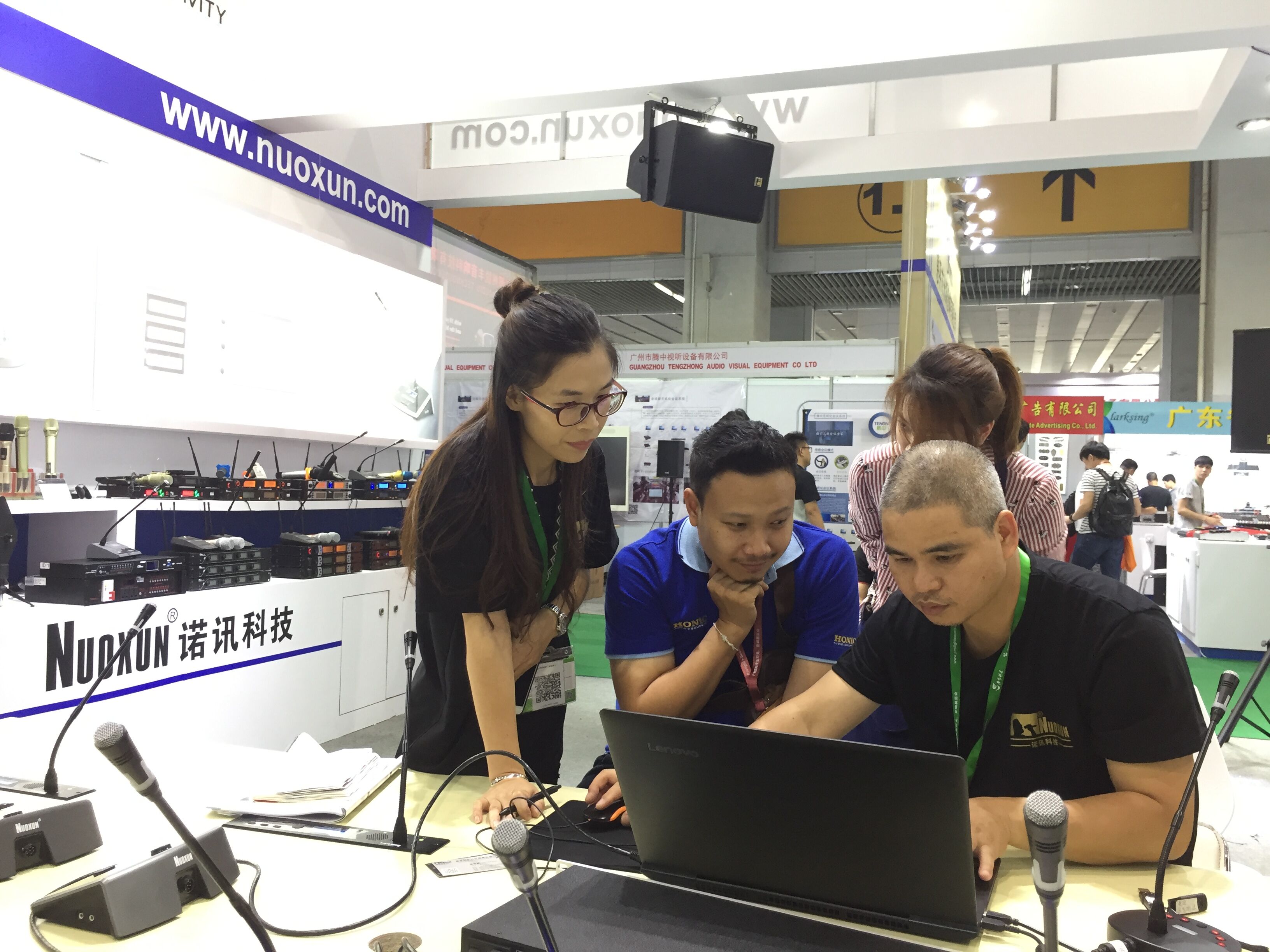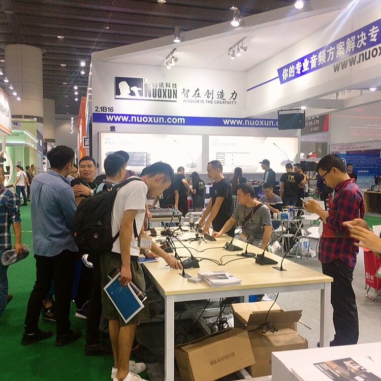 我司本次参展产品内容与搭建的主题风格非常统一,主次分明,能最大化地彰显展品主题,如我司的表决型数字视像会议系统NX-8900M,便携式手拉手会议系统NX-1600M,真分集UHF无线麦克风UT-43、NX-930/980、QT360/380,UHF固定频点无线麦克风UE-220/240,专业数字音频处理器AD48等产品,无一不突出了我司的生产理念:“智在创造力”。新颖的设计、精致的外观、优美的音质,连外国友人都情不自禁地说:“I like the design of your compny,very smart!(我喜欢你们公司的设计,非常精巧)”