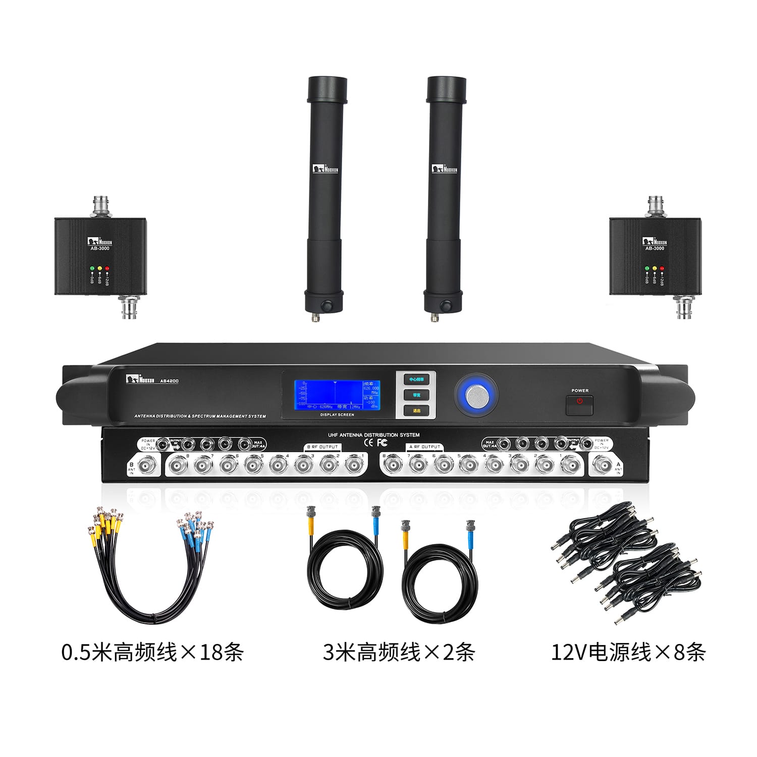 AB-4200A产品简介:1.兼容各大品牌,适用于UHF频段470-970MHz无线麦克风系统;2.现场无线电频谱实时扫描监测功能,为射频频点分配及管理提供依据;3.定向、全向、壁挂式等,多种类型及性能不同的天线提供选择;4.高频信号带通滤波功能,过滤带宽以外的信号对系统造成干···