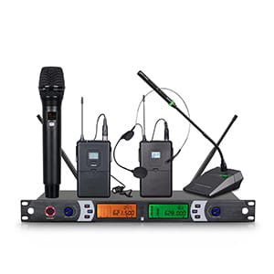 真正U段可调频、红外对频、功率调节、自动扫频、主机手持均为动态LCD液晶屏幕、金属主机/金属手持、四色手持可选择、成熟稳定高成本电路和高保真人声咪芯、专业针对KTV设计的一款无线一拖二话筒。
