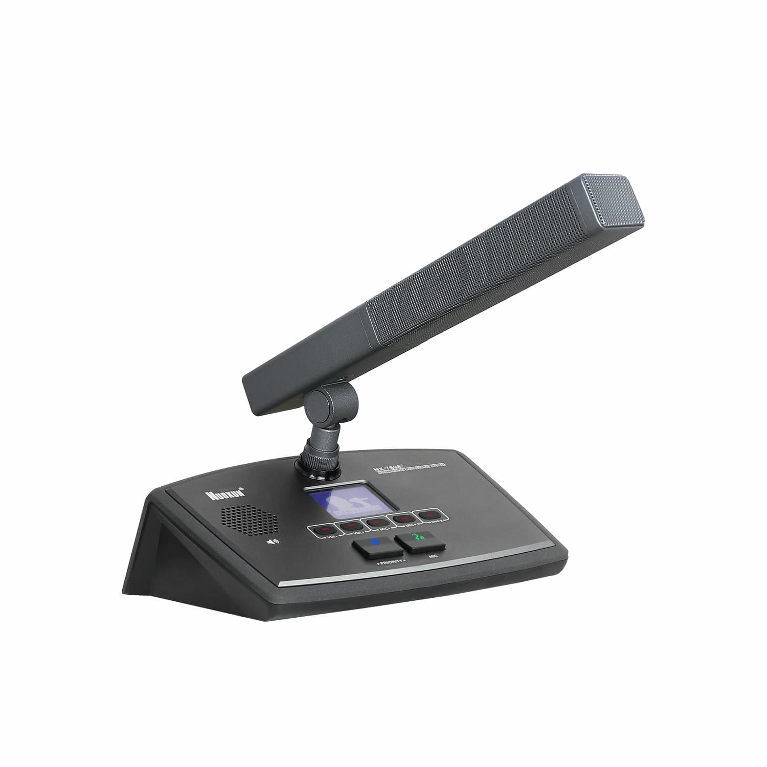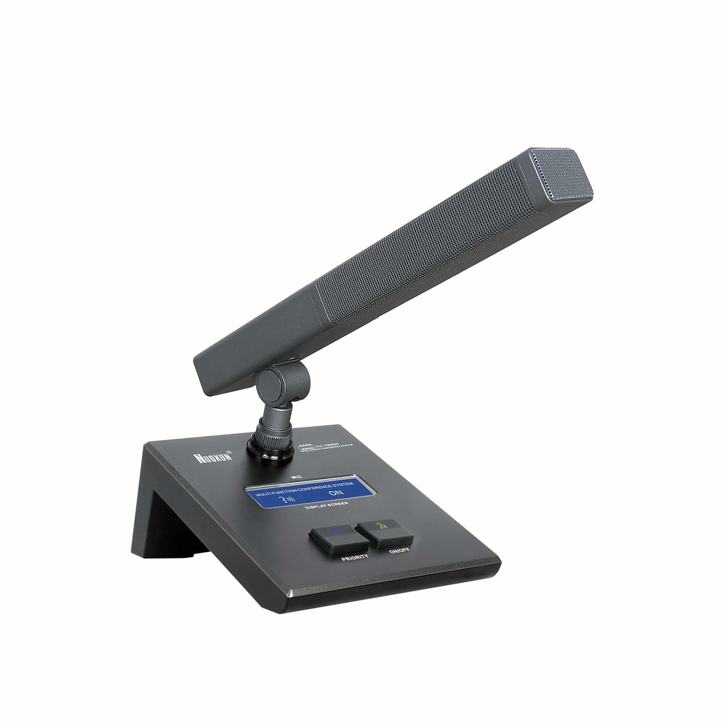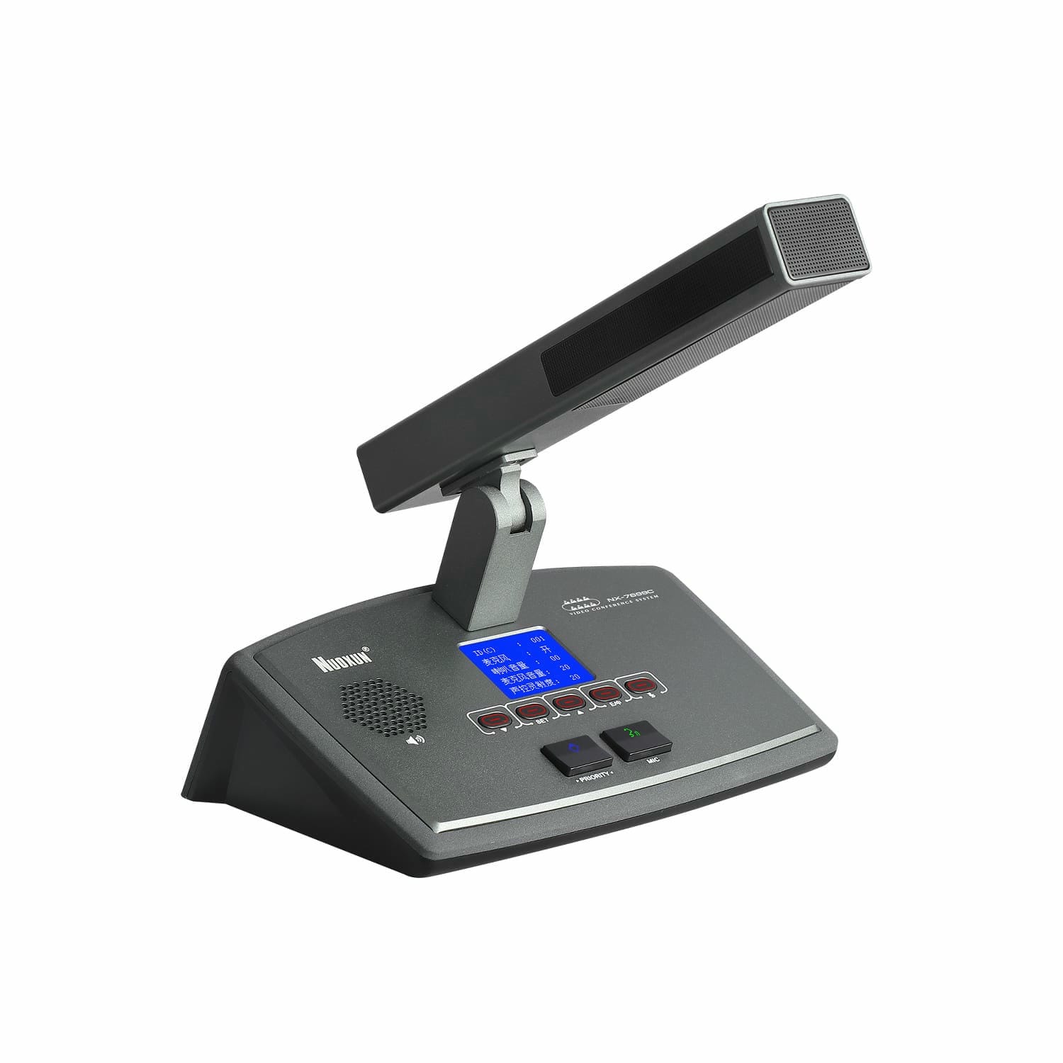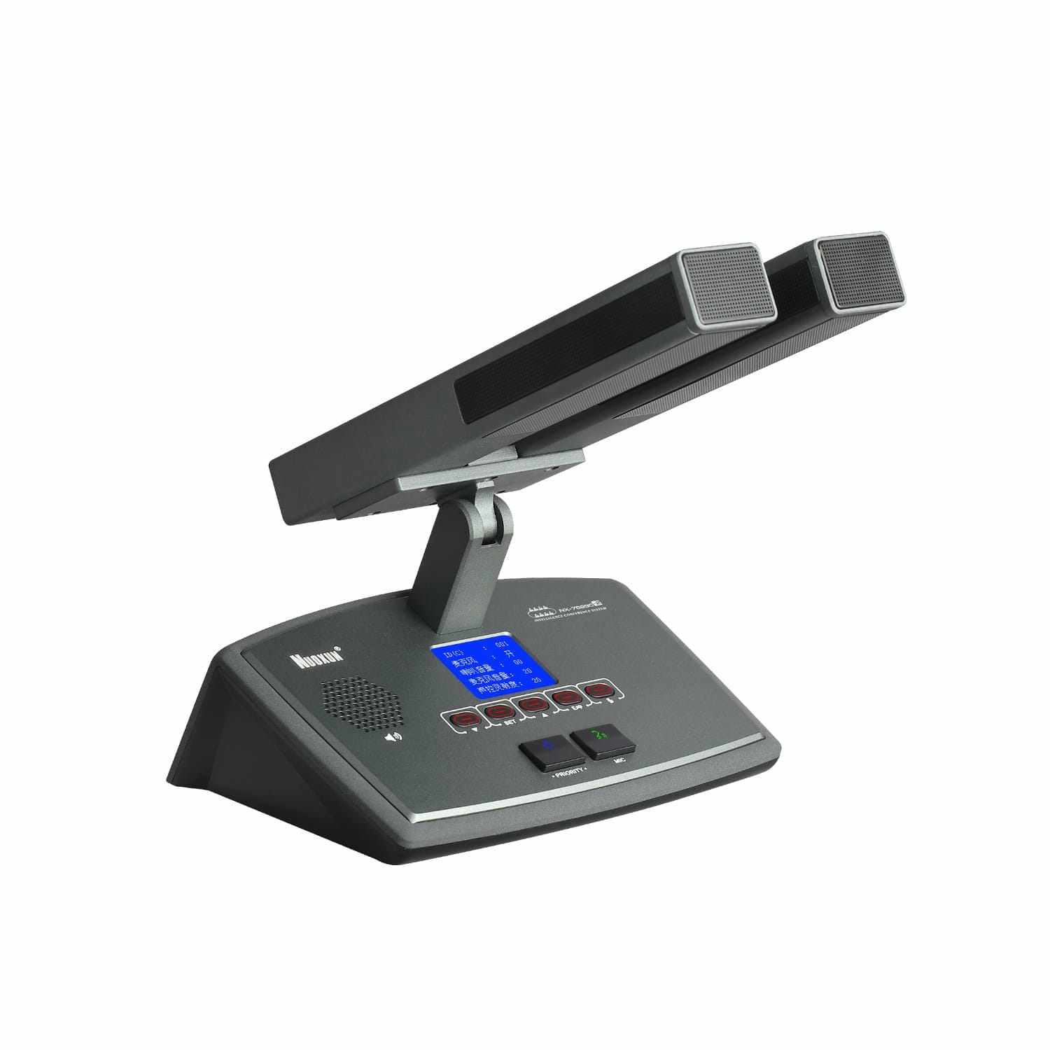 产品特点:1.面板采用高强度氧化铝合金,亚光磨纱处理,坚固耐用;2.桌面式底座,稳固大方,3.1.77寸真彩色TFT显示屏;4.可拆式方管杆带绿色发言指示光环;5.带话筒音量增减键调节;6.声控模式,主席单元和代表单元可声控打开话筒;7.输入灵敏度高,频响宽,不易产生啸···